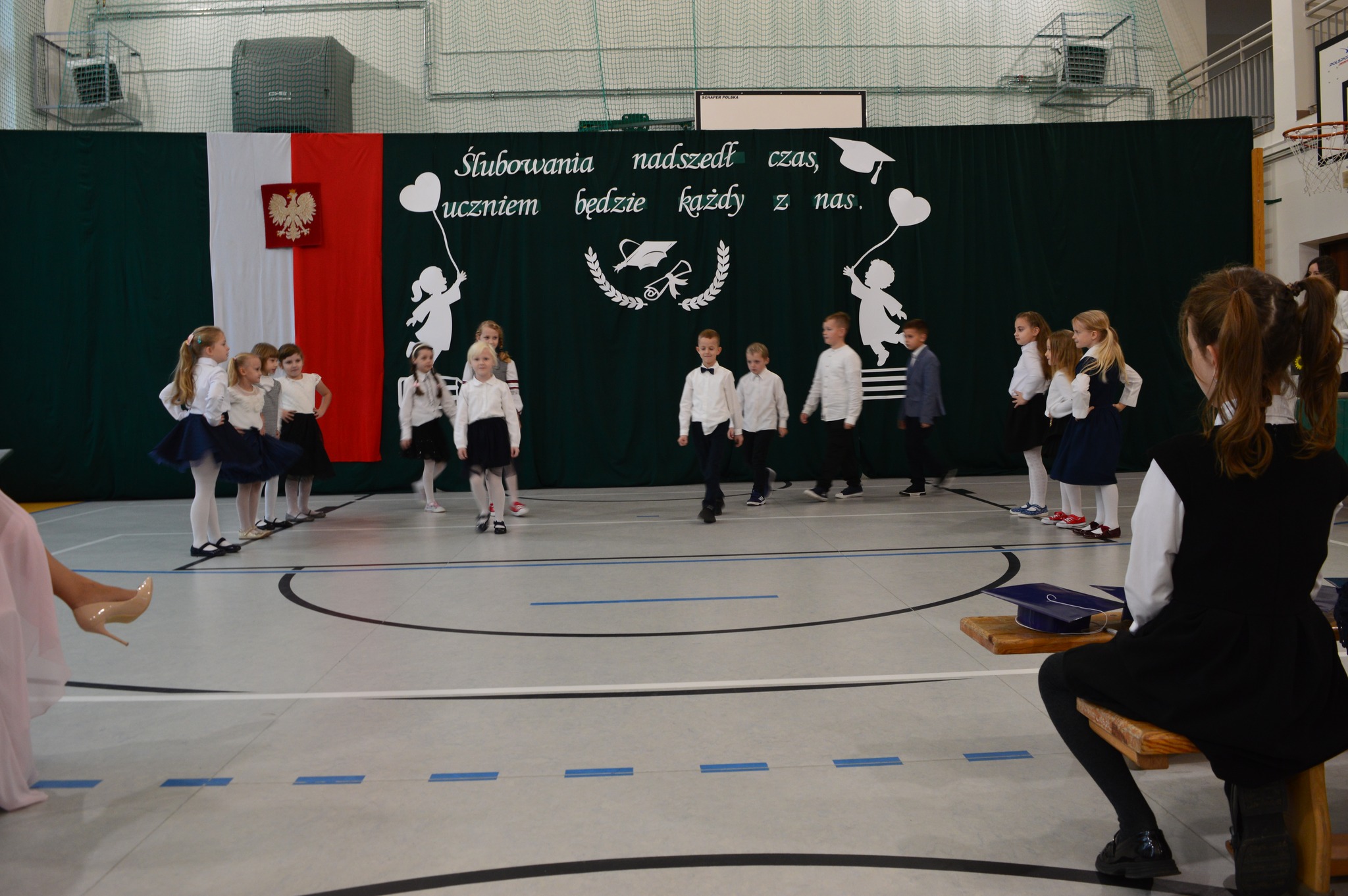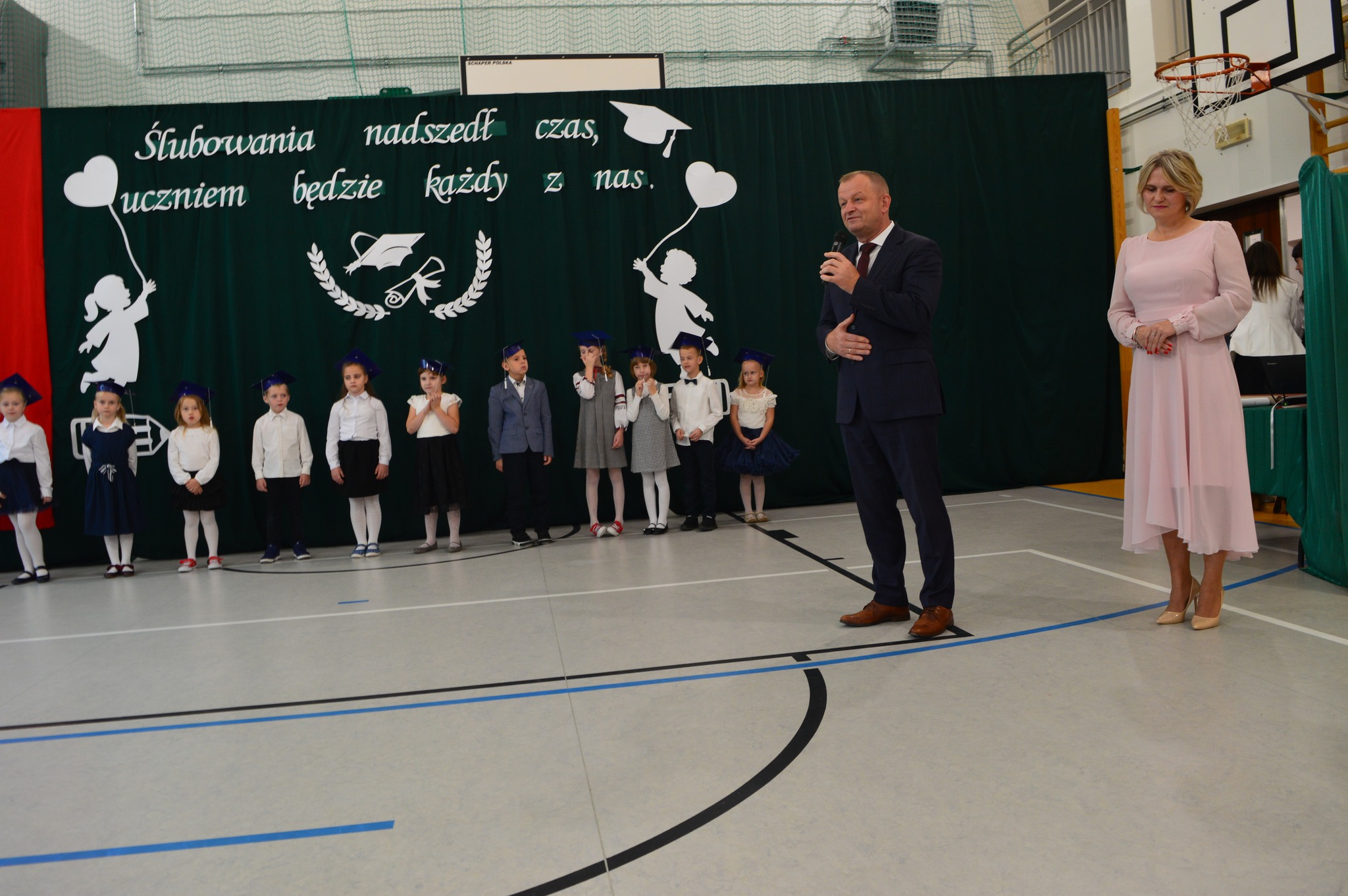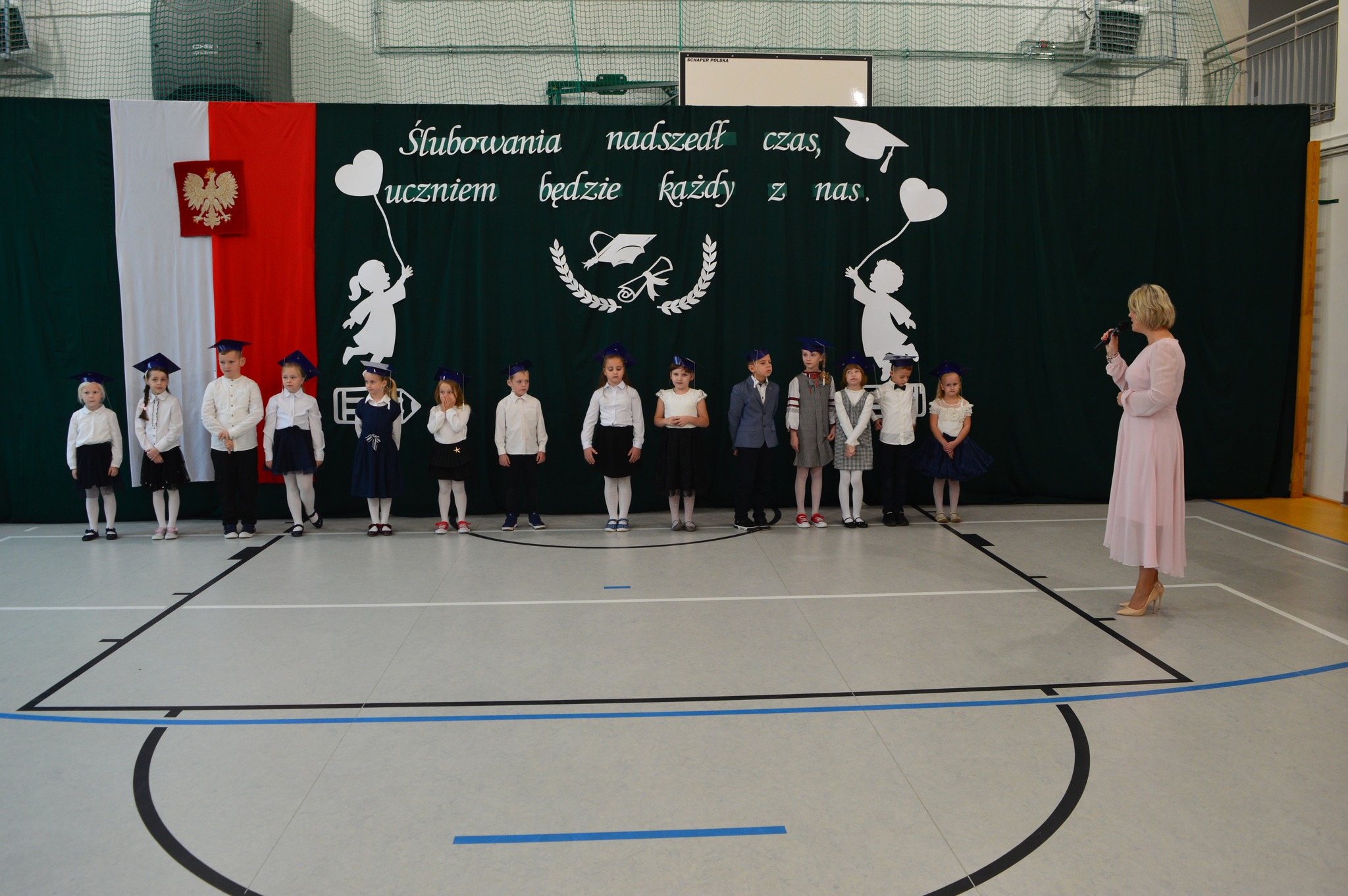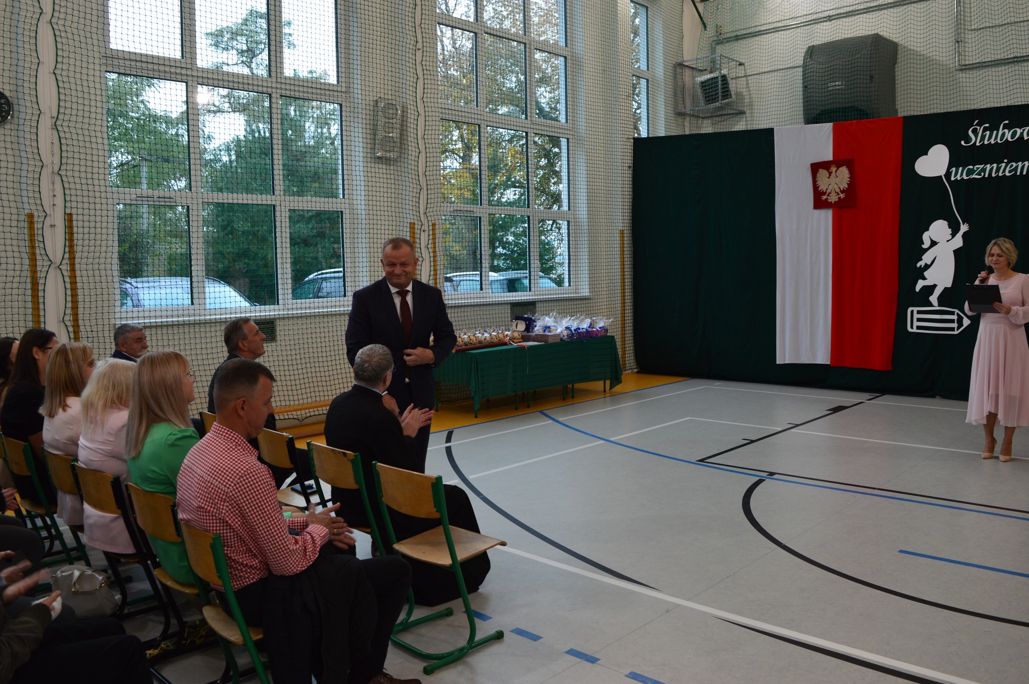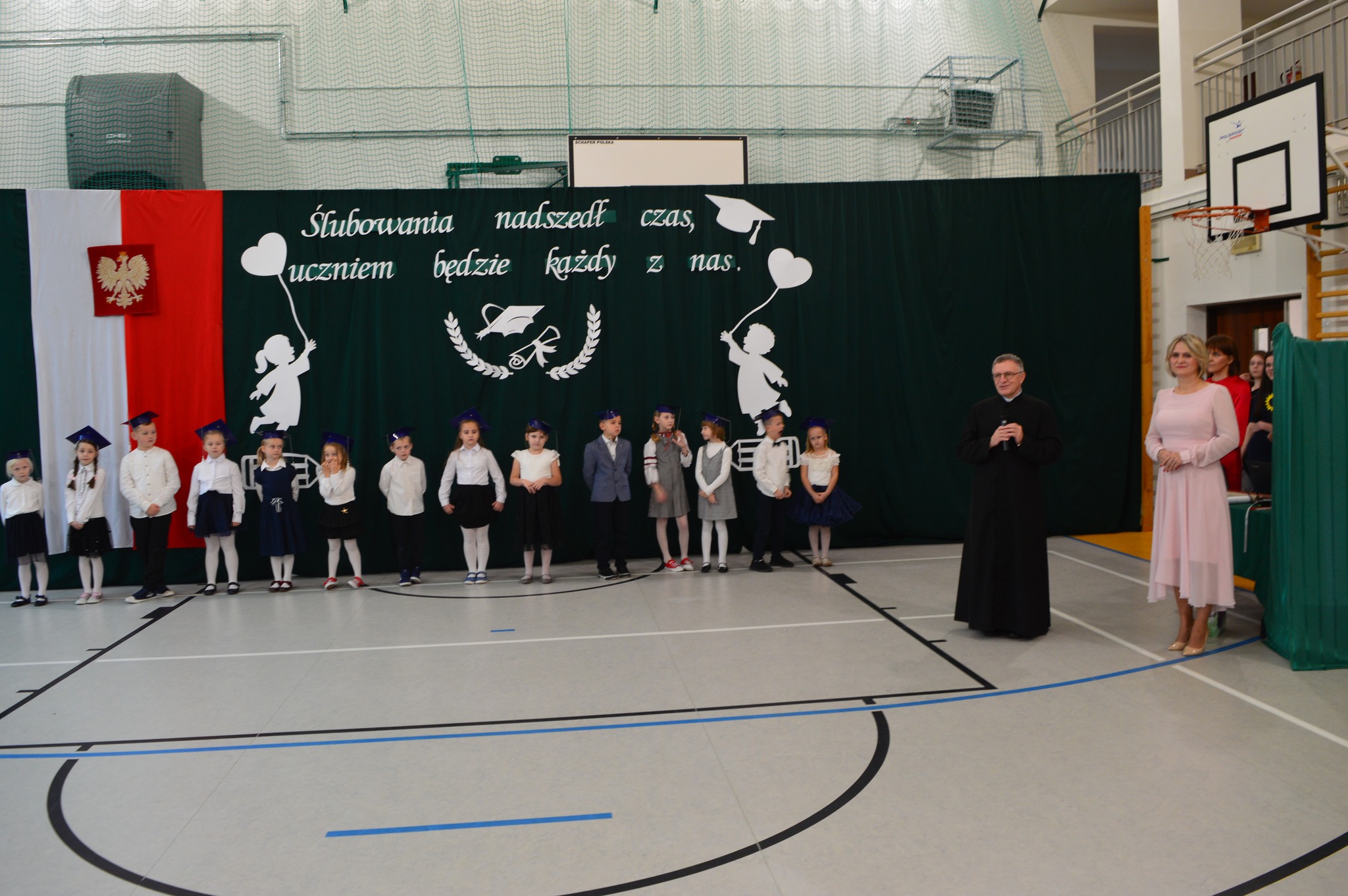 W podniosłej atmosferze, przed pocztem sztandarowym, bohaterowie dnia ślubowali być dobrymi Polakami oraz pilnymi uczniami.