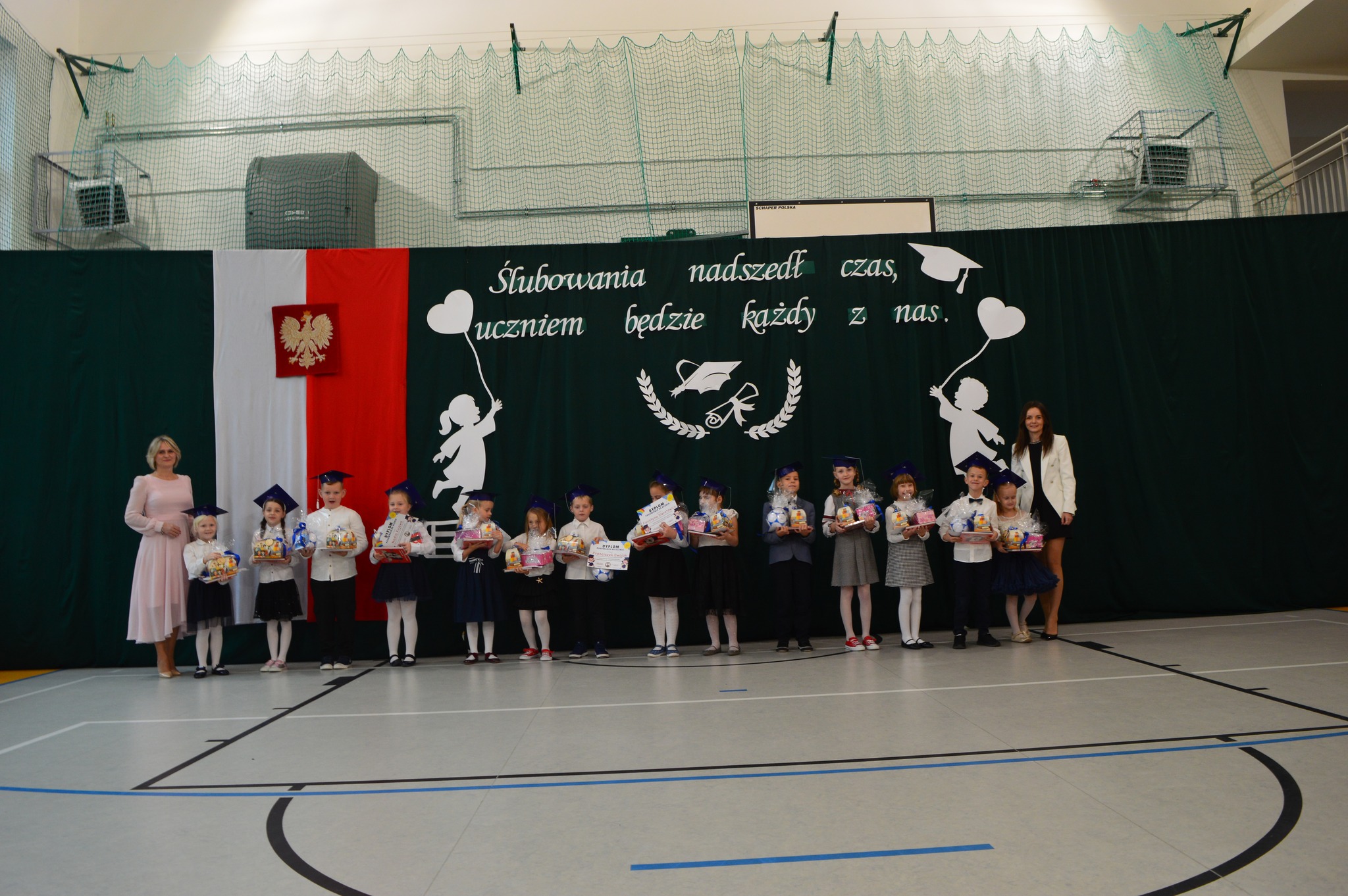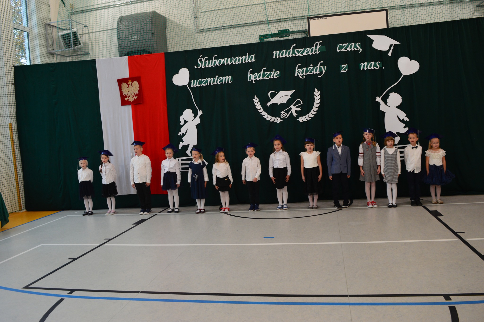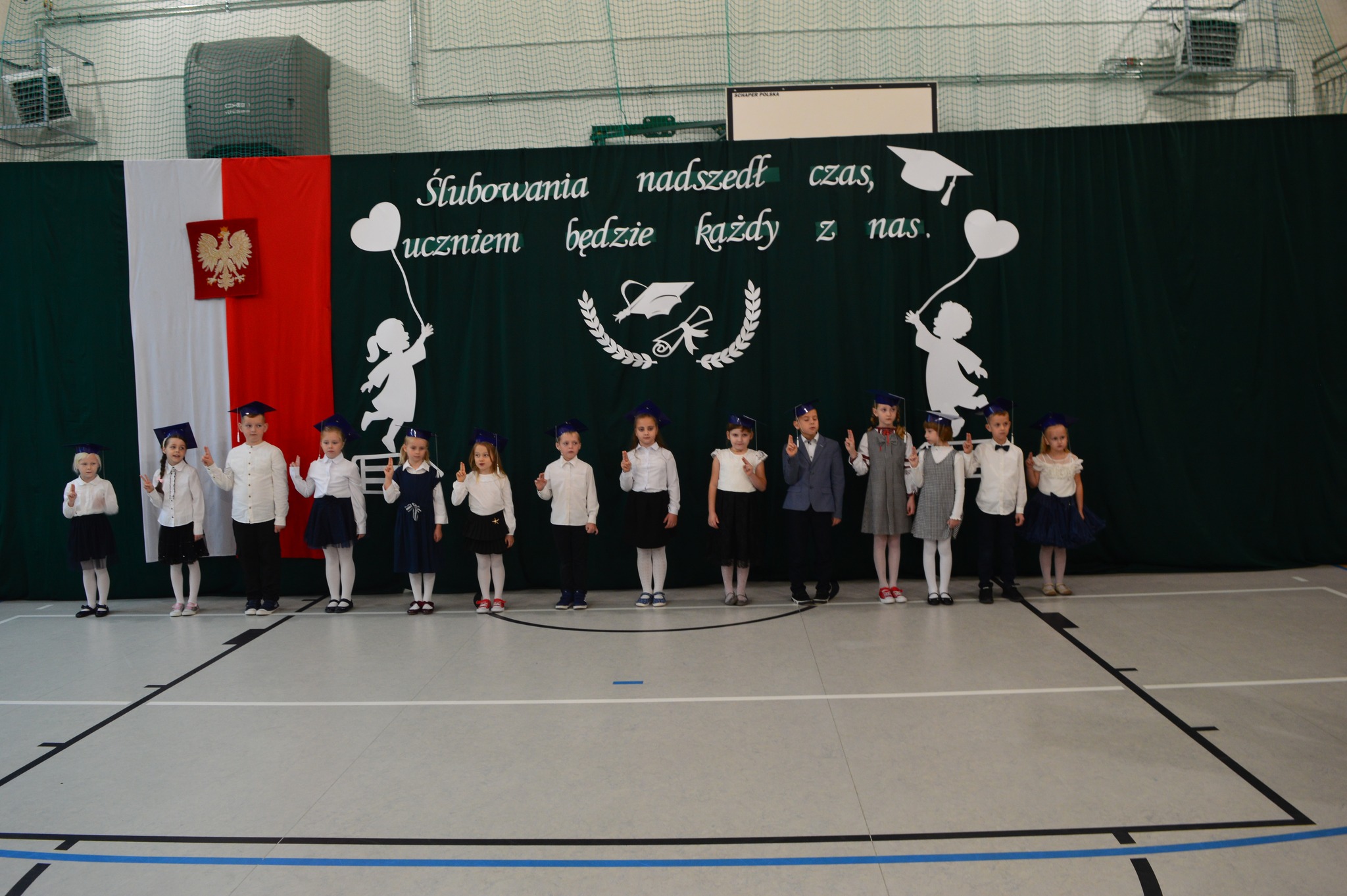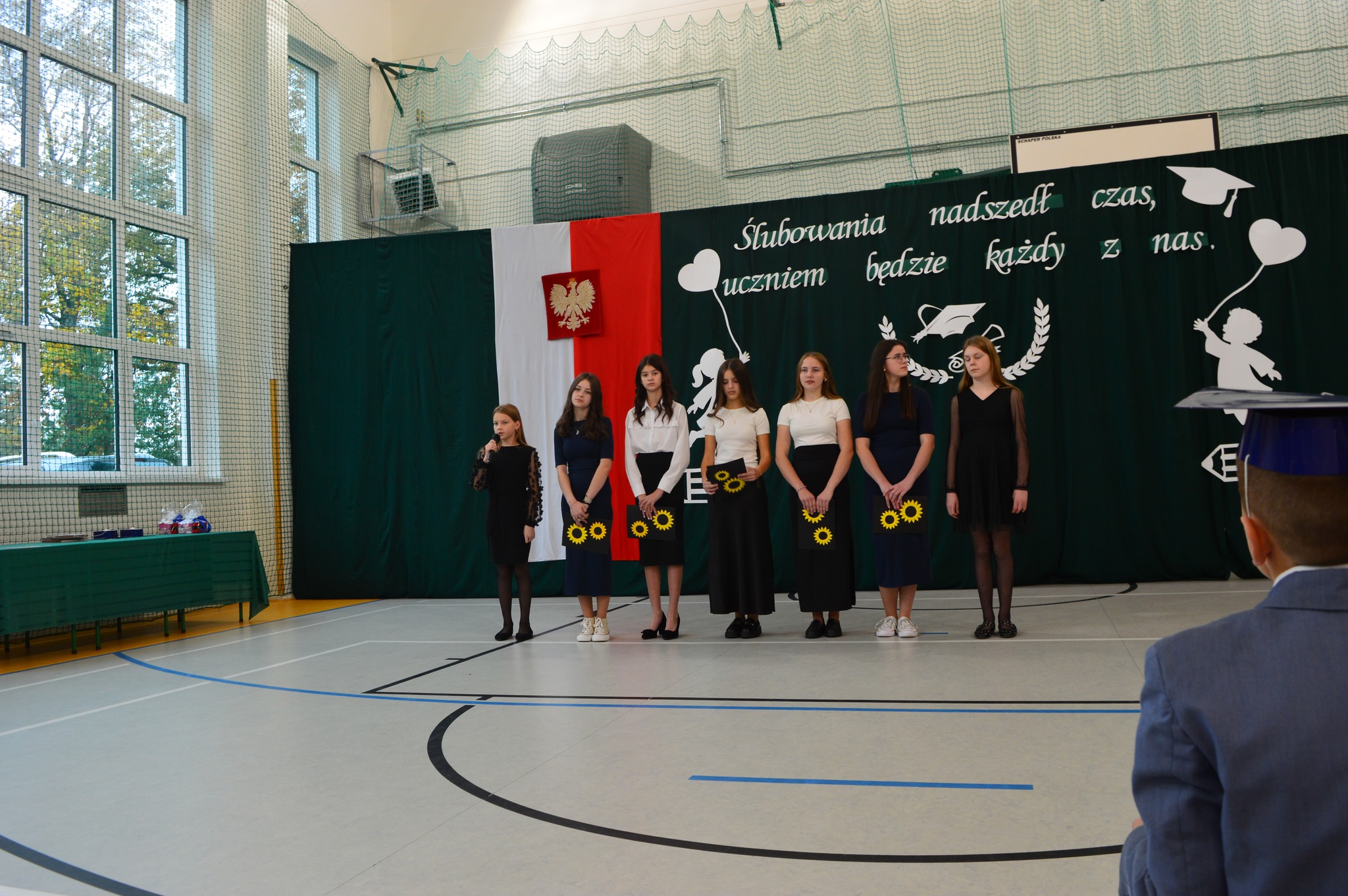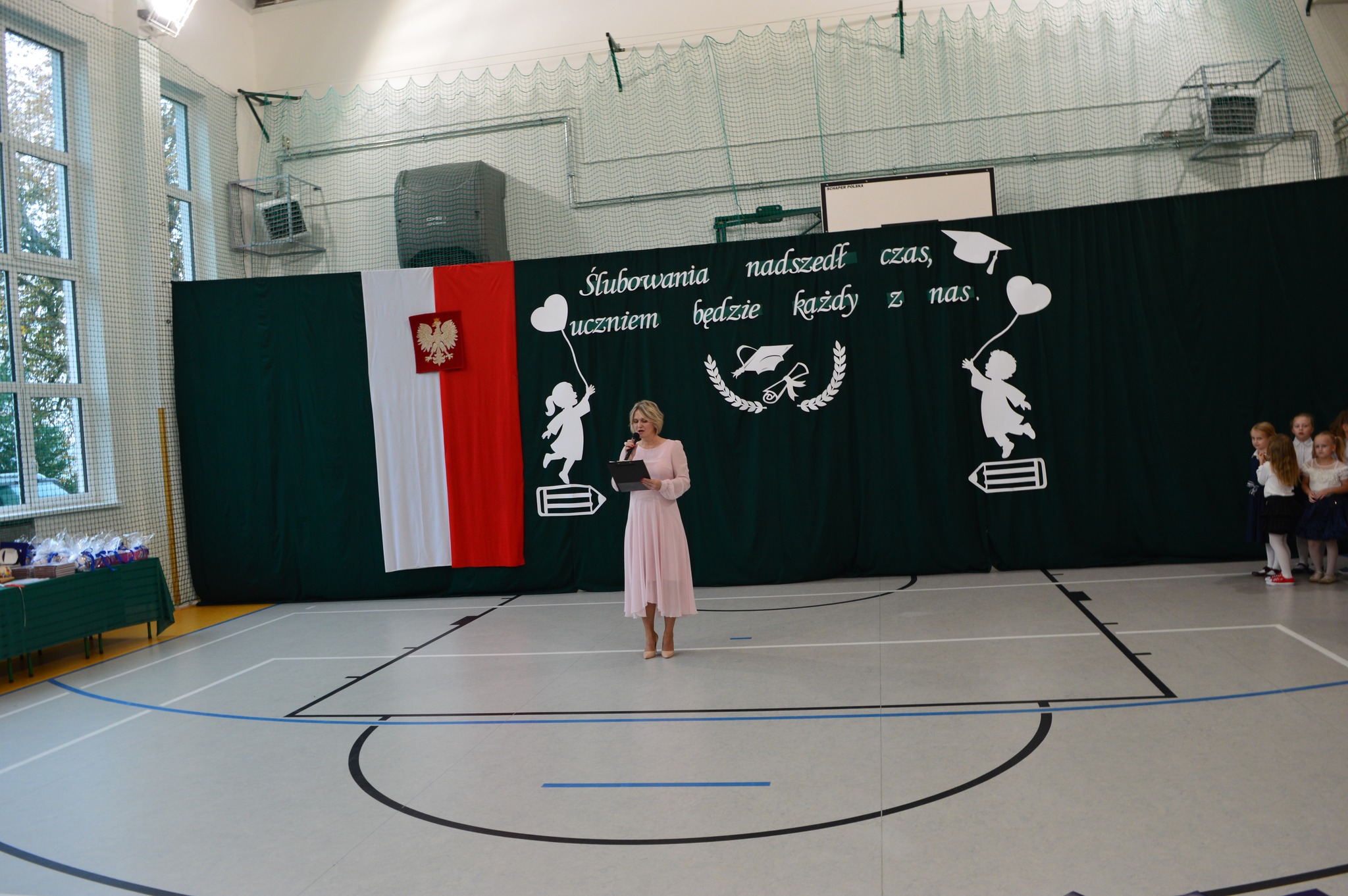 W podniosłej atmosferze, przed pocztem sztandarowym, bohaterowie dnia ślubowali być dobrymi Polakami oraz pilnymi uczniami.