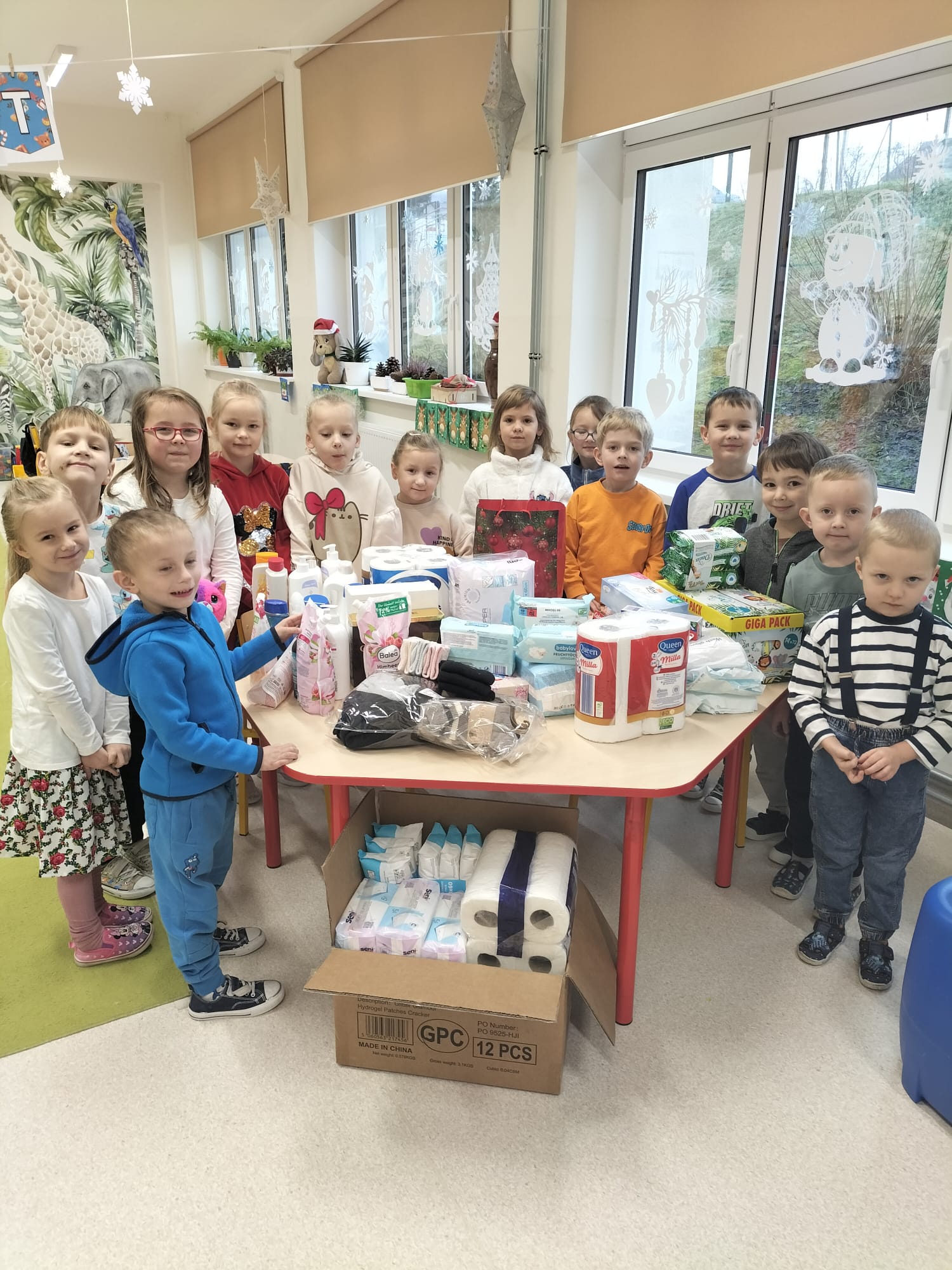 Zebrane produkty pięknie zapakowały, wraz z wychowawczynią, dzieci z oddziału przedszkolnego, a delegacja Szkoły w składzie: Zofia Michalik, Ewelina Kociołek oraz Julia Brzegowy, Kasia Michalik, Kacper Kociołek przekazała je podopiecznym hospicjum.