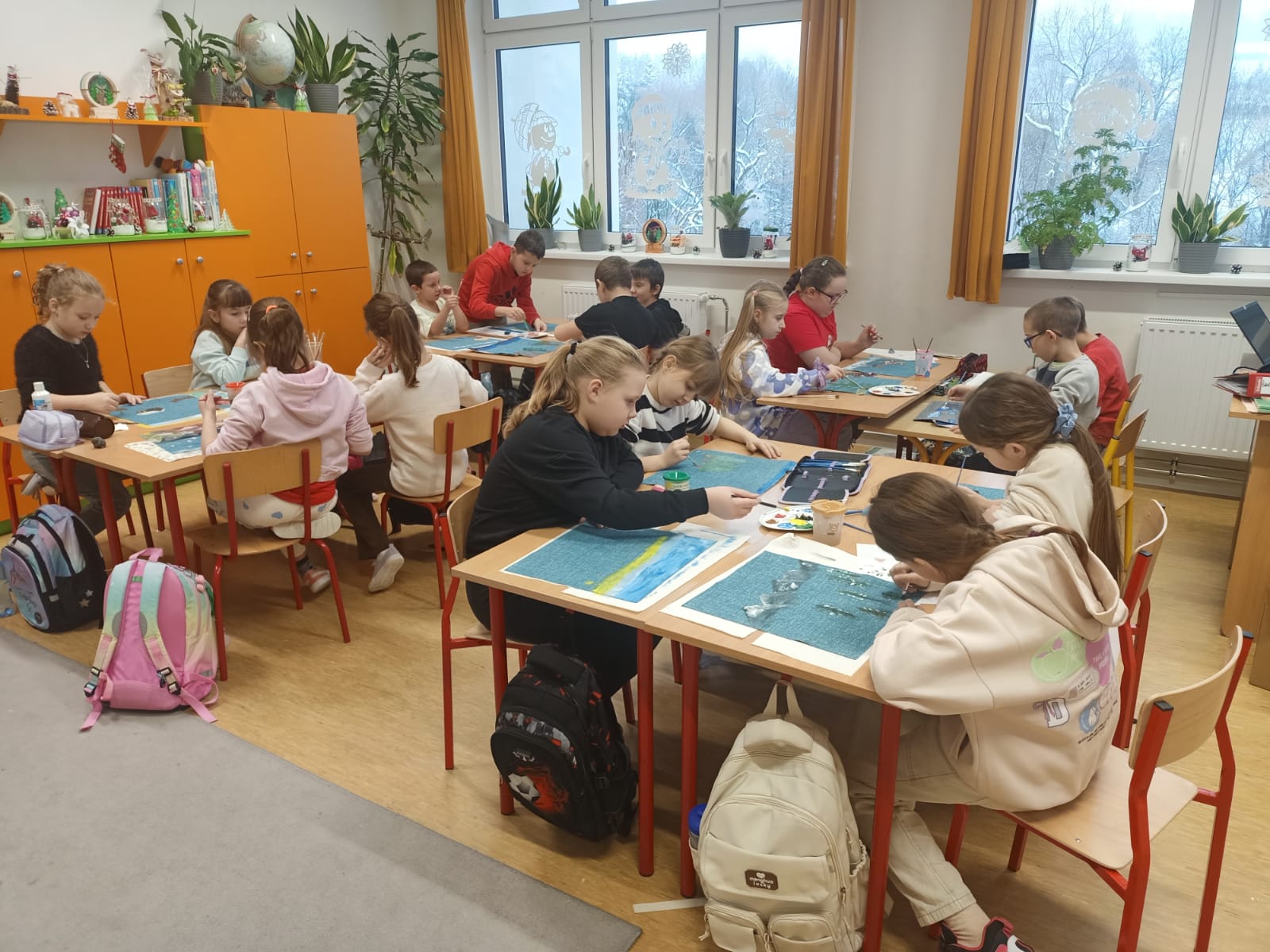 Na zajęciach edukacji wczesnoszkolnej uczniowie klasy drugiej