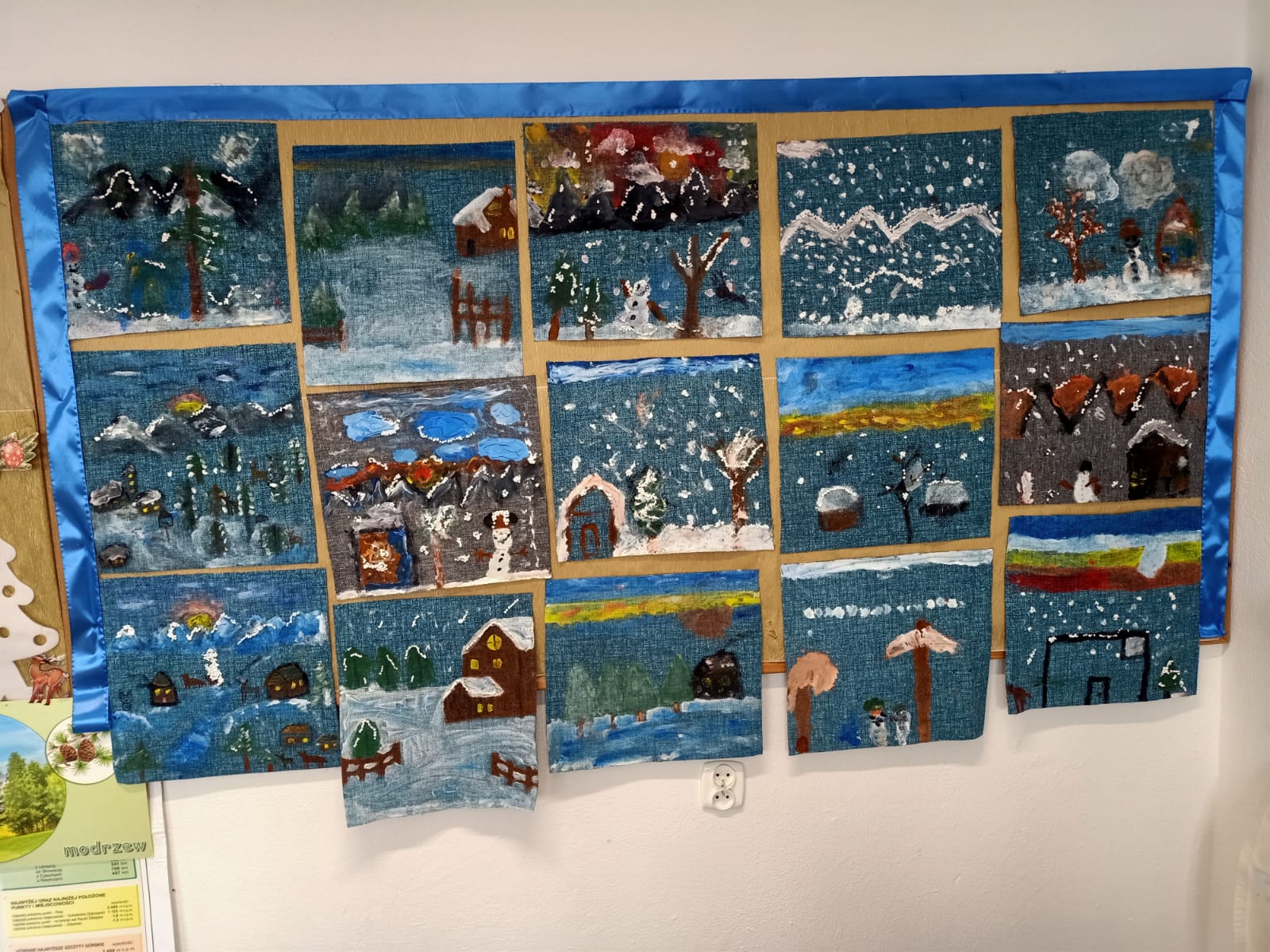 Gotowe prace zostały wyeksponowane na gazetce klasowej, gdzie można podziwiać efekty pracy młodych artystów.