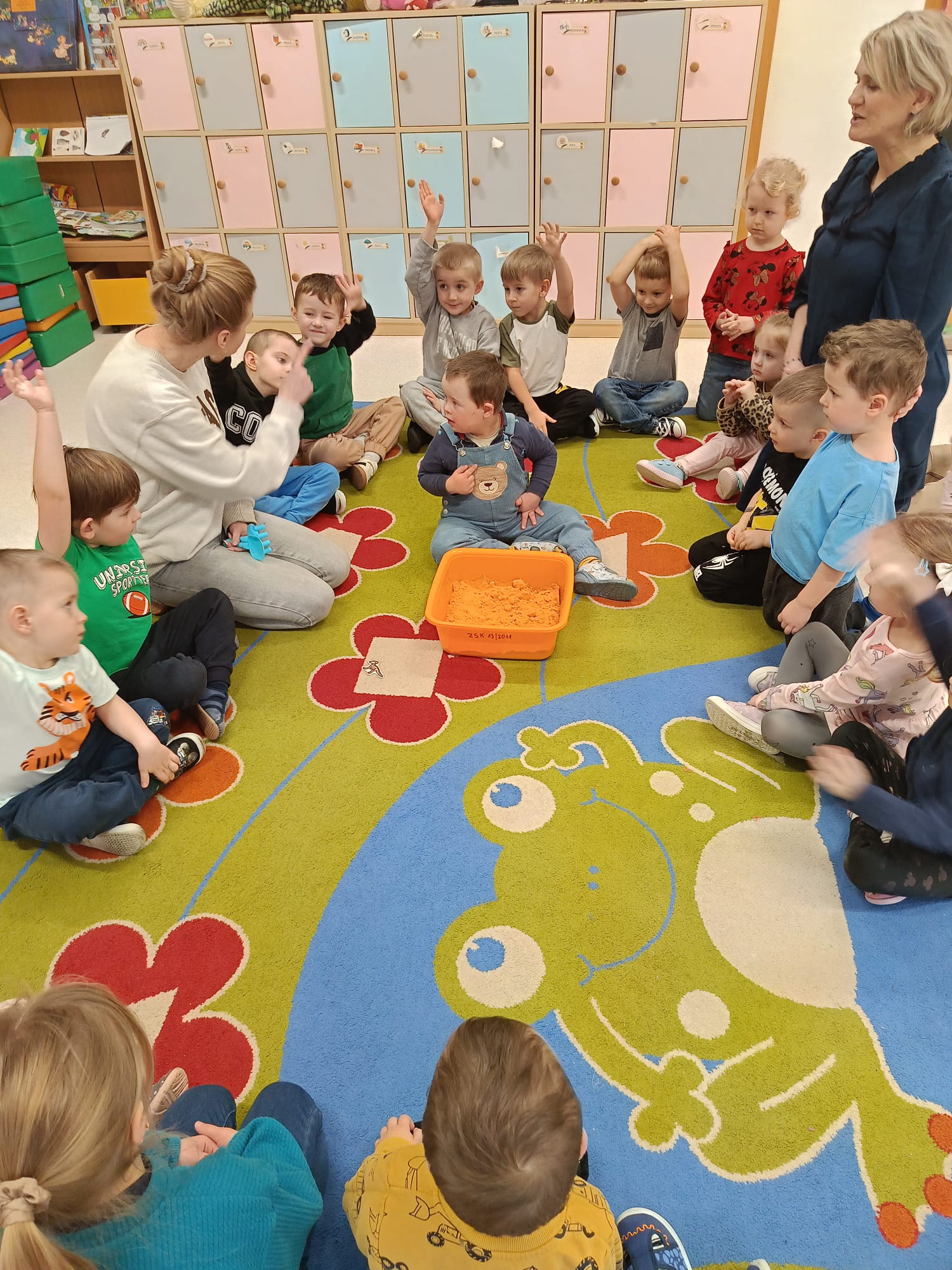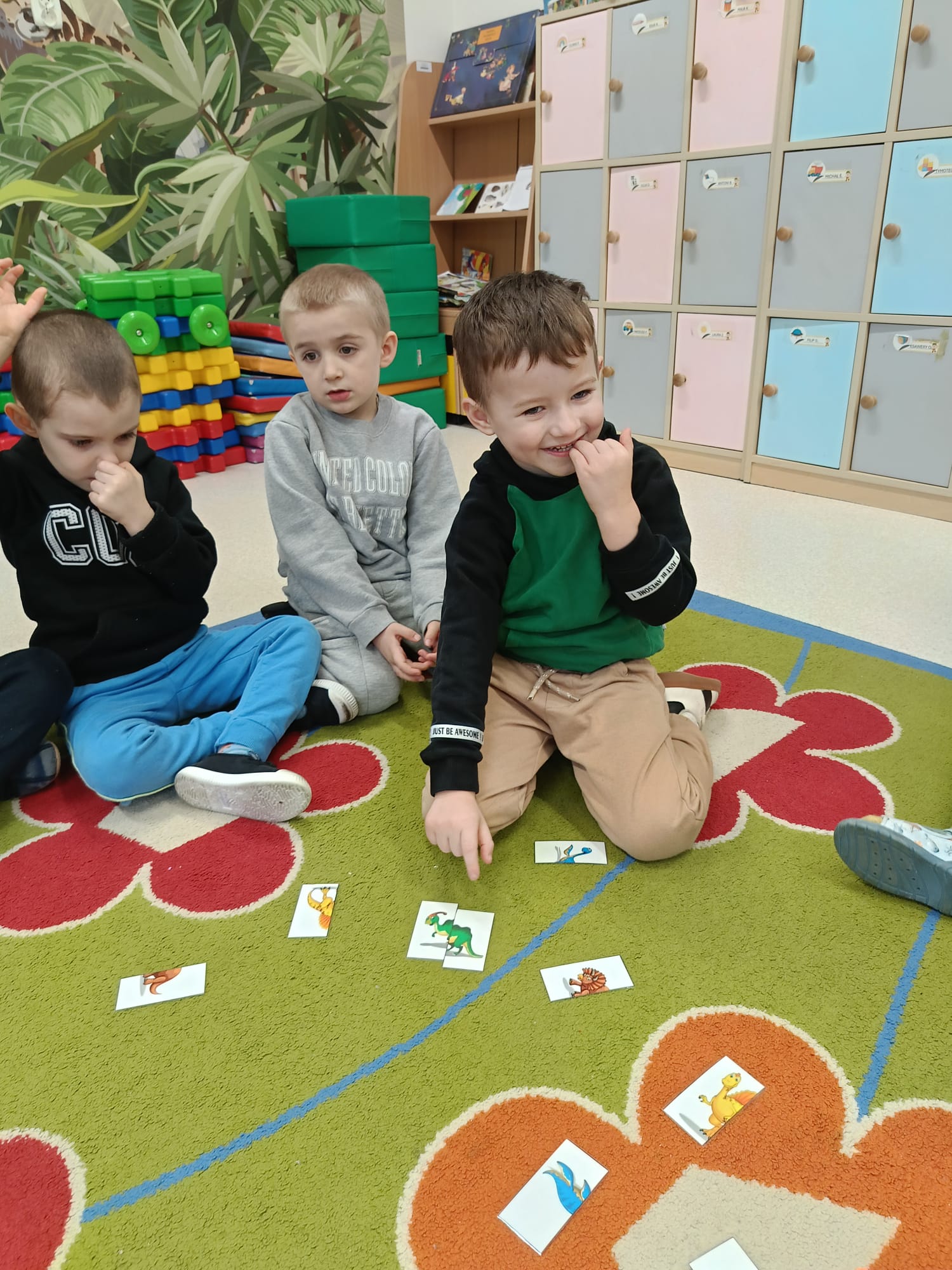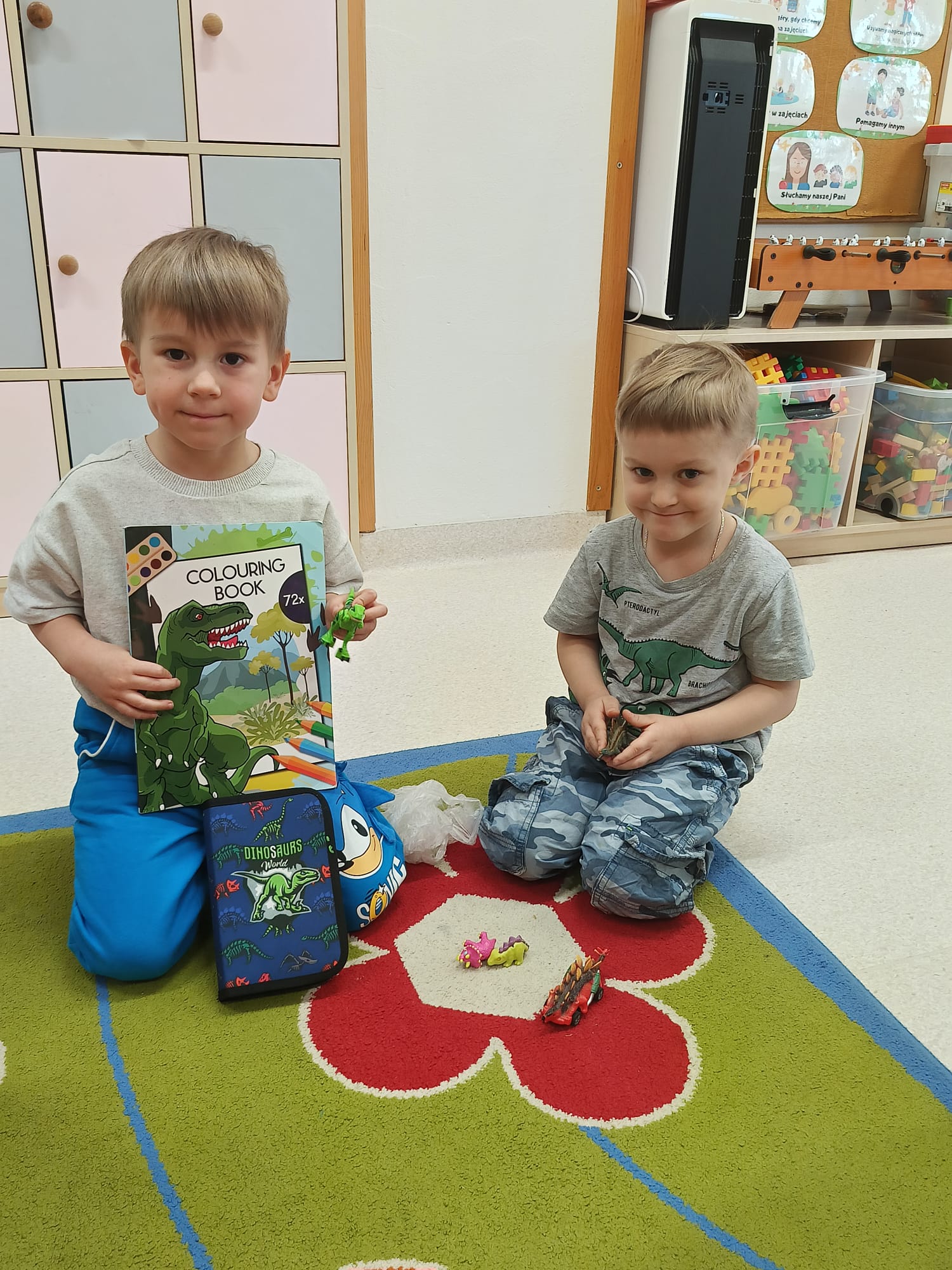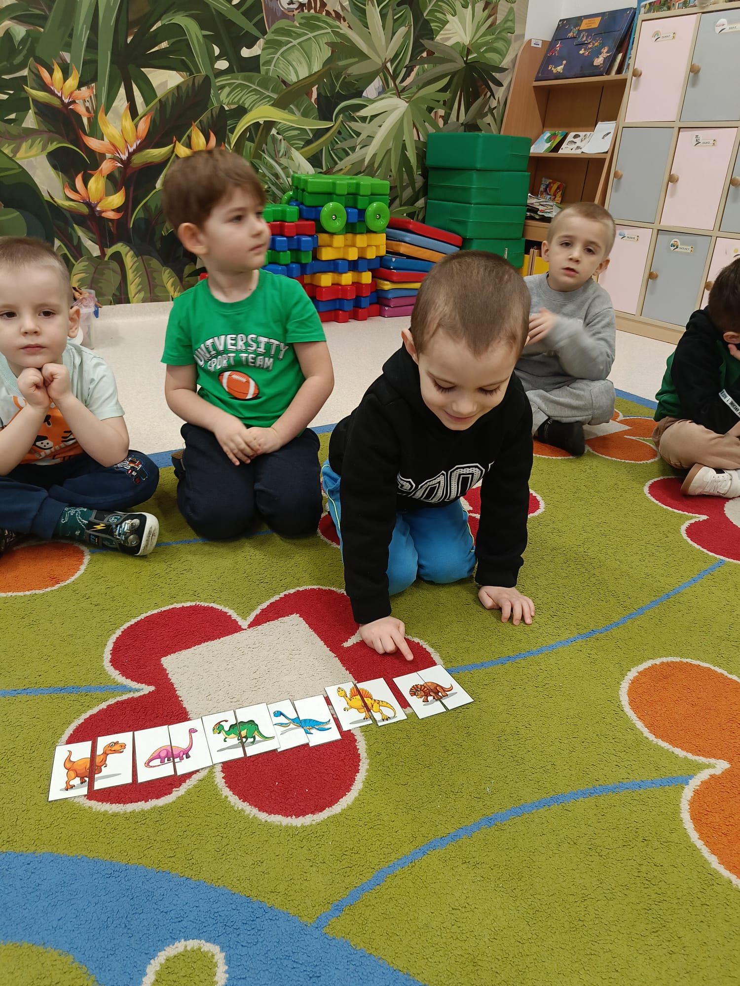 Już od samego rana sala zamieniła się w prawdziwą krainę dinozaurów. Dzieci przyniosły figurki i książeczki o tych niezwykłych stworzeniach. Wspólnie oglądaliśmy ilustracje, poznawaliśmy nazwy wybranych dinozaurów oraz ciekawostki na temat ich życia. Przedszkolaki dowiedziały się, kim jest paleontolog i na czym polega jego praca.