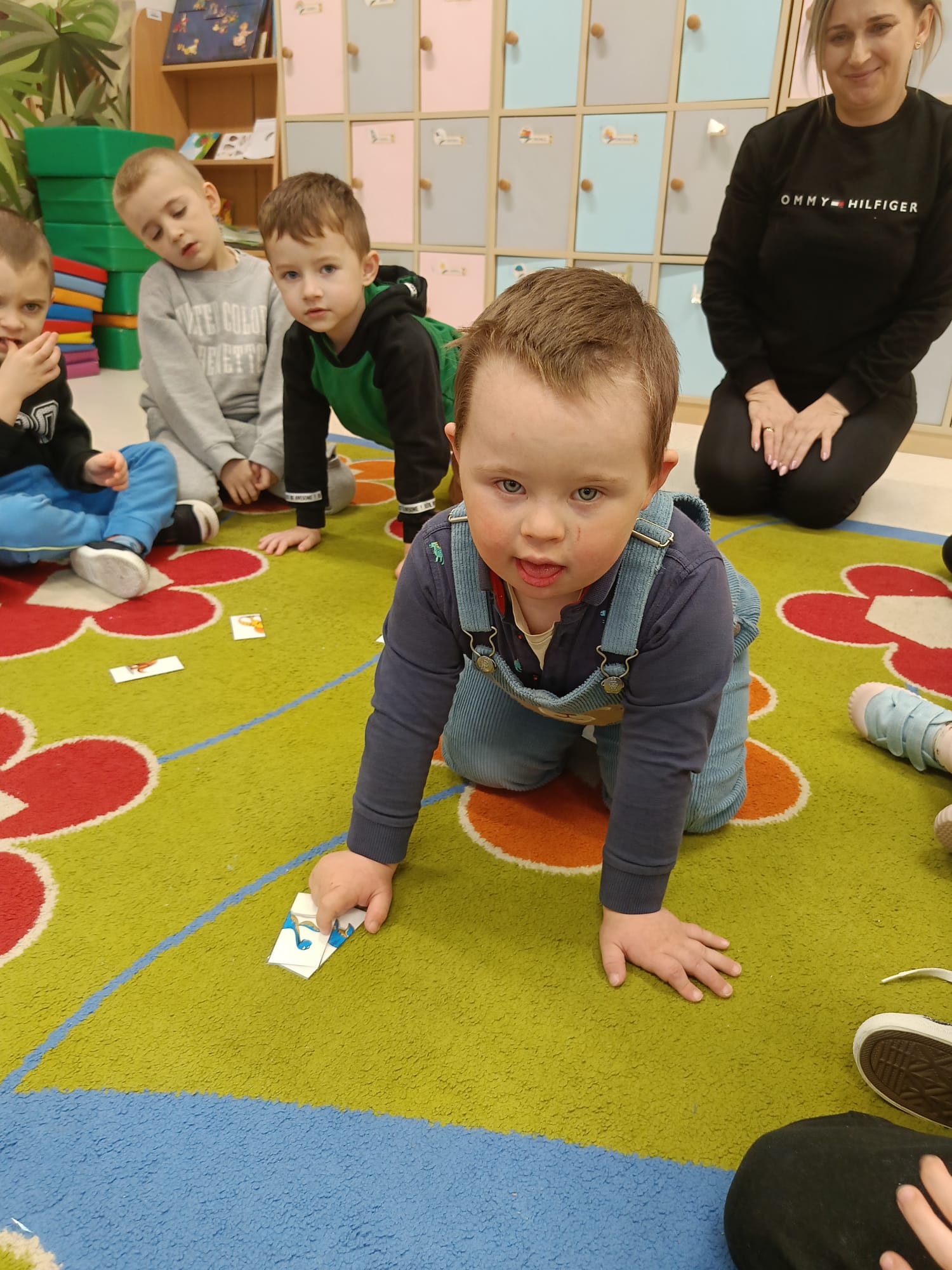 Podczas zajęć nie zabrakło aktywności ruchowych. Dzieci zamieniły się w dinozaury – chodziły jak T-Rexy, skakały jak małe welociraptory i rozciągały swoje „długie szyje” jak brachiozaury. Było dużo śmiechu i pozytywnej energii!