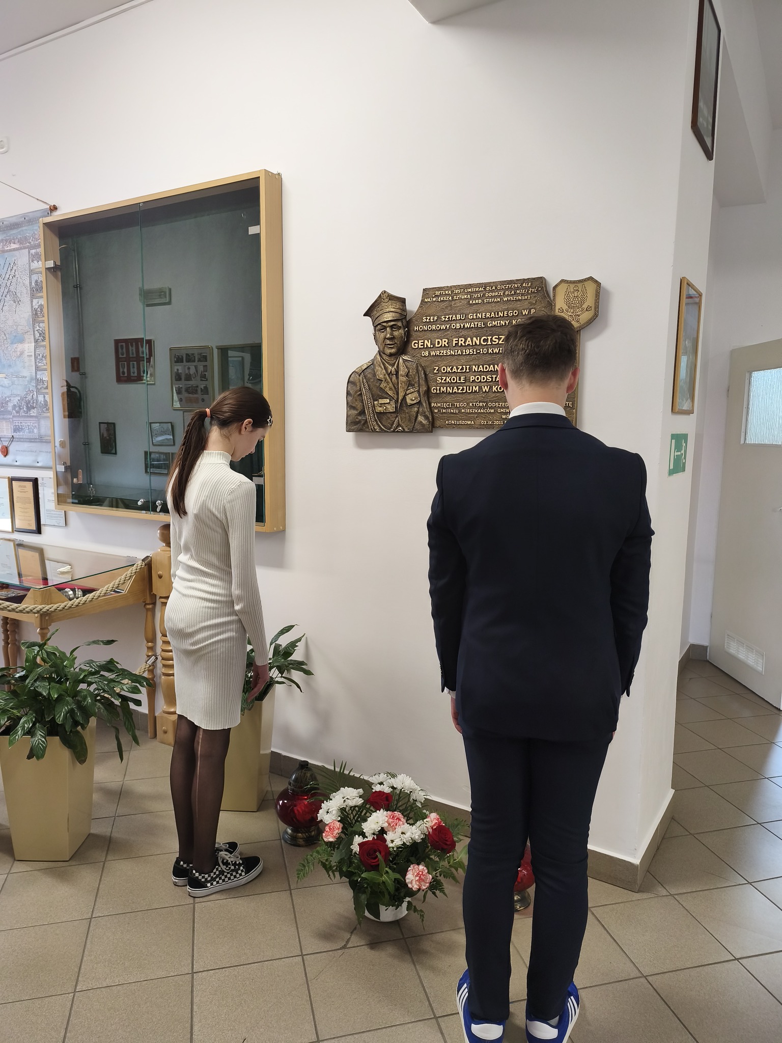 Po akademii, delegacja w składzie: Agata Ligęza – Chyc – dyrektor szkoły, Ewelina Kociołek – nauczyciel zastępujący dyrektora, Aurelia Rola – przedstawicielka Samorządu Uczniowskiego, Bartosz Turski – uczeń klasy ósmej oraz uczęszczająca do oddziału przedszkolnego Laura Zieleń, złożyła kwiaty i zapaliła znicze pod tablicą upamiętniającą Generała Franciszka Gągora, która znajduje się w poświęconej mu Izbie Pamięci.
