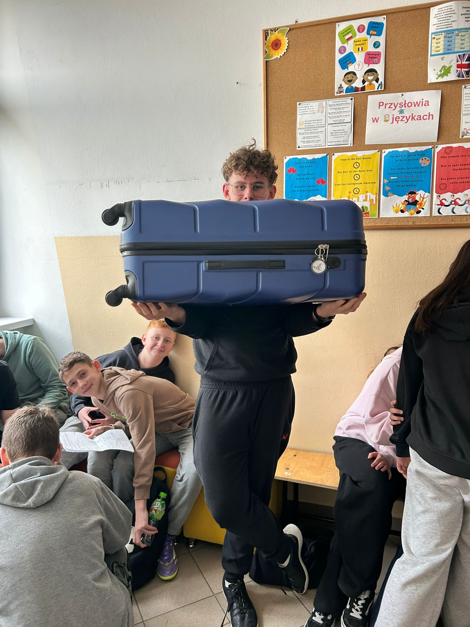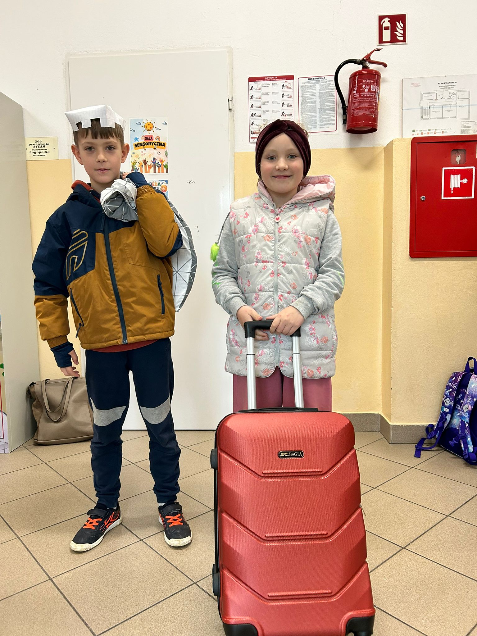 Uczniowie wykazali się ogromną pomysłowością, przynosząc swoje książki i przybory w najbardziej nietypowy sposób — pojawiły się walizki, koszyki, skrzynki a nawet poszewki na pościel!