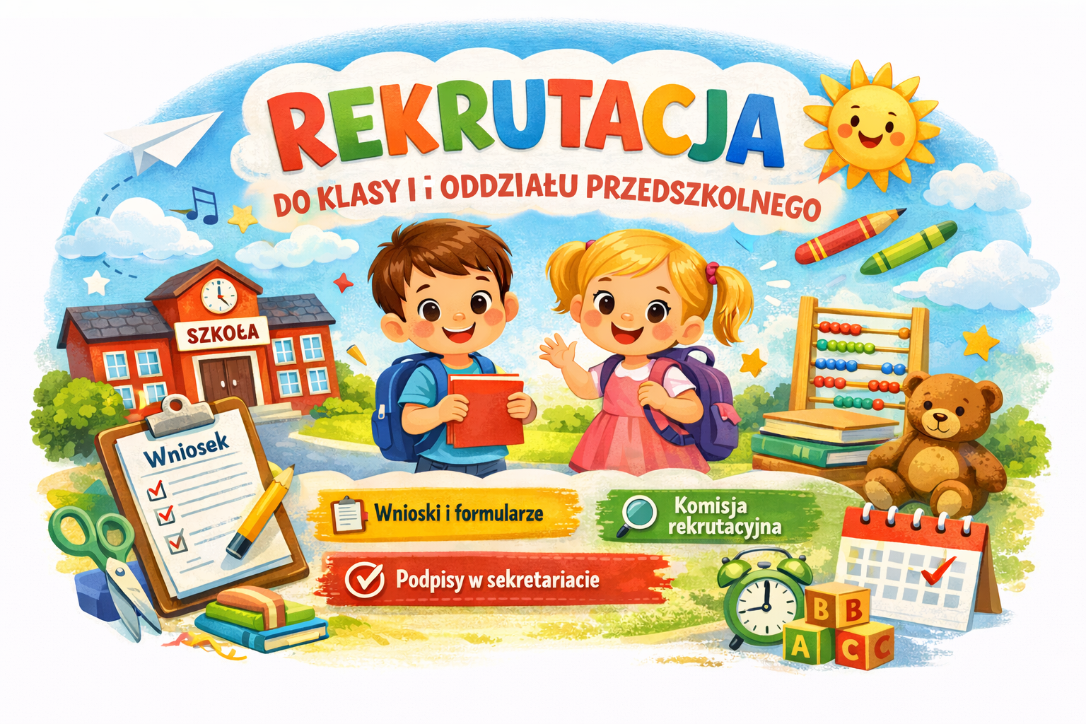Rozpoczynamy rekrutację do klasy I szkoły podstawowej oraz  oddziałów przedszkolnych na rok szkolny 2026/2027.